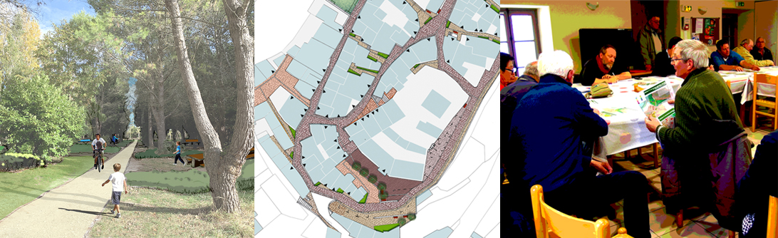 (études urbaines & paysagères; projets d'aménagement & d'espaces publics; programmation; faisabilité; documents réglementaires…) ancrées dans les principes du